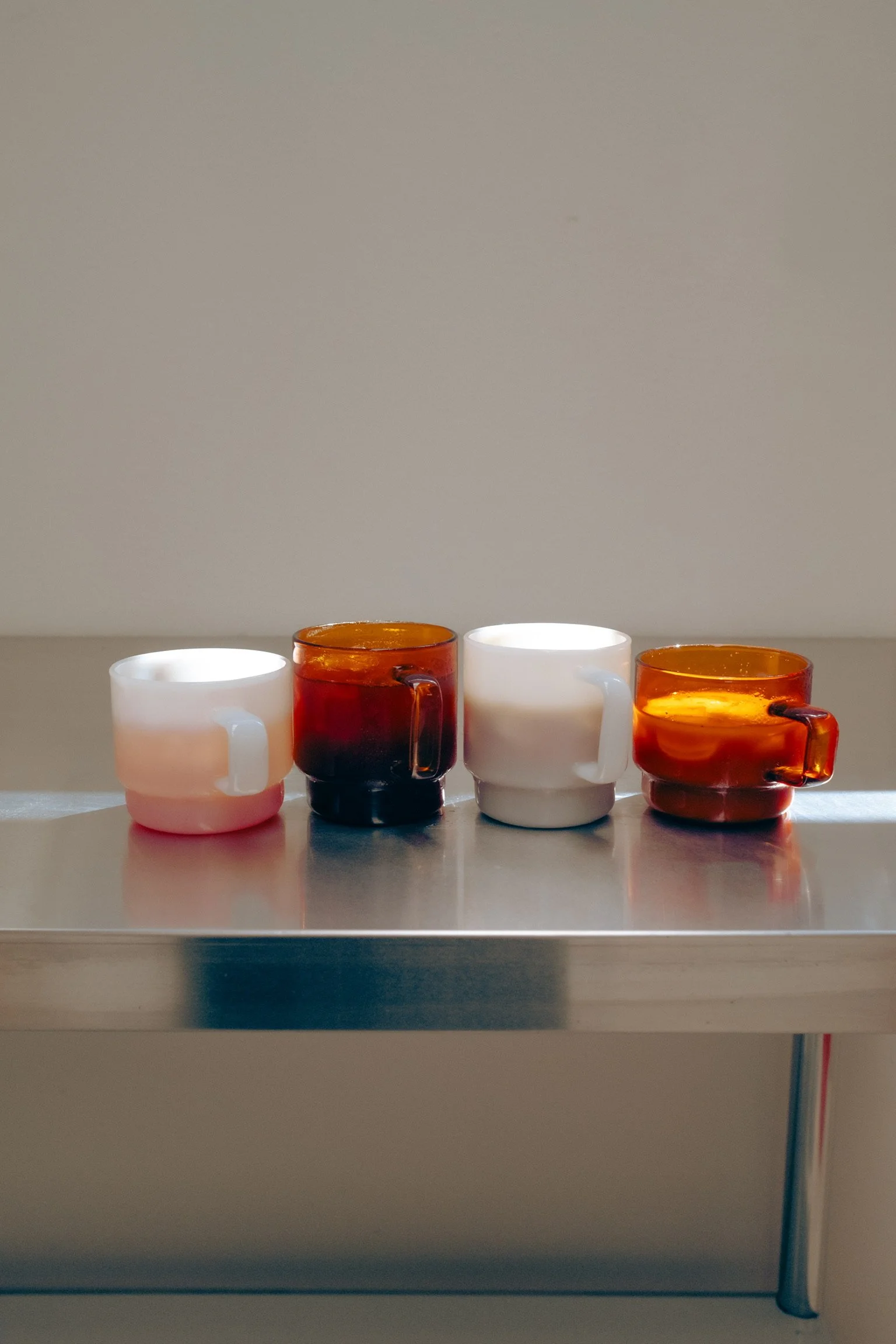 AMBER & MILK GLASS MUGS